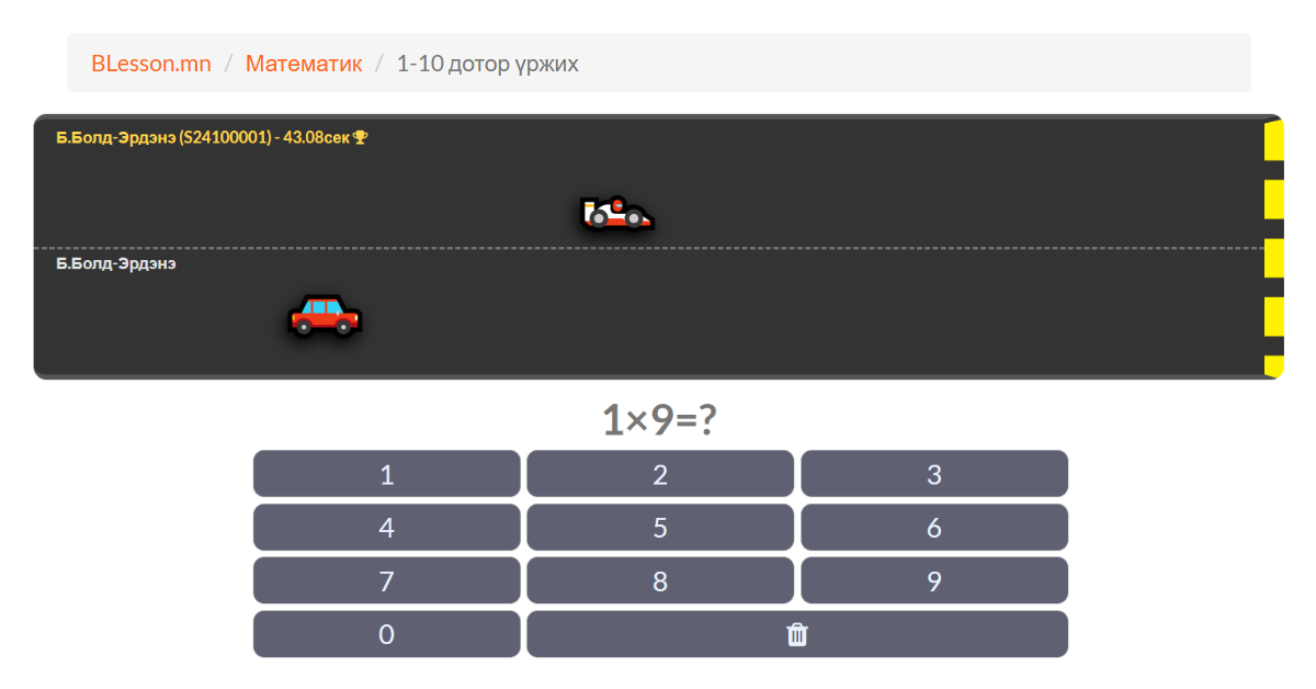 Уралдаж үржих (1-10 хүрд)